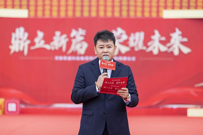 zui后,在熱情洋溢的現(xiàn)場(chǎng)氛圍中,河南榮盛科技集團(tuán)董事長(zhǎng)楚科奇發(fā)布了致辭。他首先代表集團(tuán)向蒞臨現(xiàn)場(chǎng)的各位領(lǐng)導(dǎo)、嘉賓及全體員工表示熱烈歡迎與誠(chéng)摯感謝。楚總回顧了集團(tuán)十二年的發(fā)展歷程,指出新材料生產(chǎn)基地的建成,凝聚了全體榮盛人的智慧、汗水與堅(jiān)守,是企業(yè)十二年奮斗征程上的重要里程碑,更是企業(yè)面向未來(lái)、決勝未來(lái)的戰(zhàn)略新起點(diǎn)。楚總強(qiáng)調(diào),新工廠的順利落成,得益于各級(jí)主管部門(mén)的大力支持與高效服務(wù),也離不開(kāi)集團(tuán)管理層的高效協(xié)同與一線團(tuán)隊(duì)的奮力拼搏。他特別感謝了王海軍總經(jīng)理及集團(tuán)管理層,稱贊其在項(xiàng)目戰(zhàn)略定位與資源配置中發(fā)揮的關(guān)鍵作用;同時(shí),他也向宋廣林總經(jīng)理及全體建設(shè)者致敬,感謝他們不畏艱辛、全力以赴,將一片荒蕪之地打造為現(xiàn)代化智能工廠。