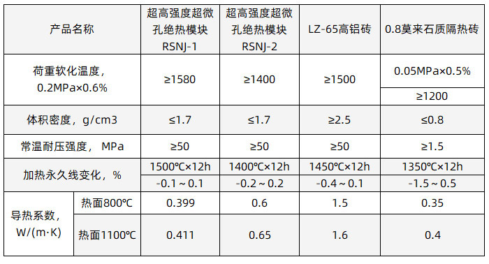 超高強度超微孔絕熱模塊兼顧了體密在2.3g/cm3以上重質磚的耐壓強度的同時,又具備了體密在0.8g/cm3的輕質磚的導熱系數。